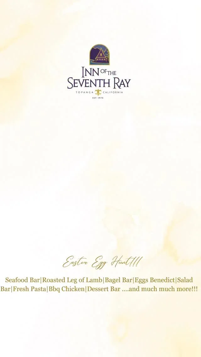 The Inn of the Seventh Ray's famous buffet brunch is expanded for Easter Weekend. Join us next to a lovely flowing creek in the Santa Monica Mountains and enjoy what Thrillist calls "possibly the best brunch buffet you’ll ever have." An organic, healthful feast that includes Shrimp Cocktail, Leg of Lamb, Eggs Benedict and an astounding variety of vegan, raw, and gluten-free salads and pastries.